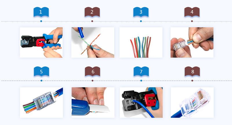 Cada par de hilos de cobre en el cable de red CAT5E tiene una capa de aislamiento de color específico para una fácil identificación. Por lo tanto, durante el engarzado, se debe seguir el código de color estándar del cable de red CAT5E para la operación de cableado.