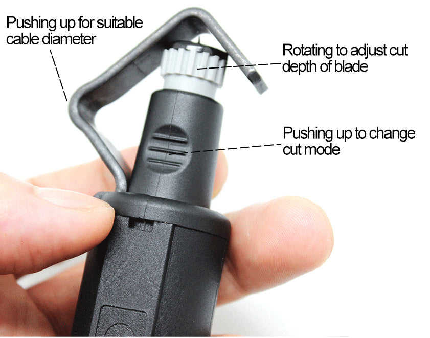 - La profundidad de la hoja se puede ajustar para adaptarse con precisión al grosor de la funda del cable
