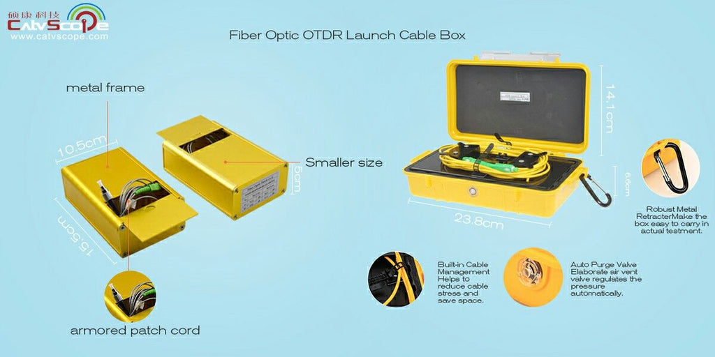 Caja de cable de lanzamiento OTDR de fibra óptica monomodo con caja mental