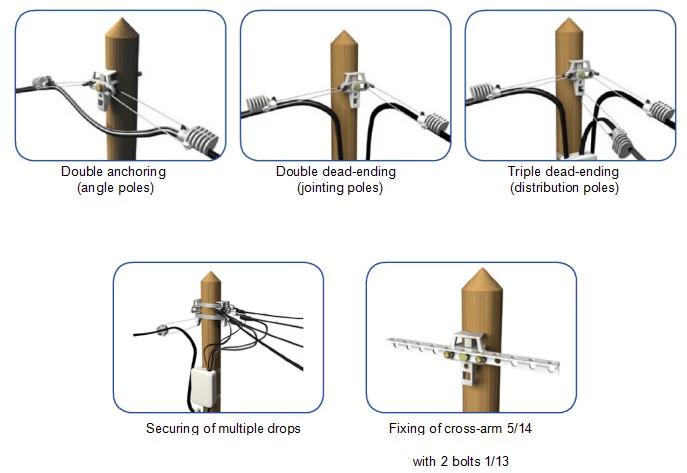 suporte de poste universal e UPB outras chamadas suporte de poste adss é projetado para tensionar e suspender grampos de tensão adss ou grampos de ancoragem de cabo figura 8 durante construções de rede aérea externa.