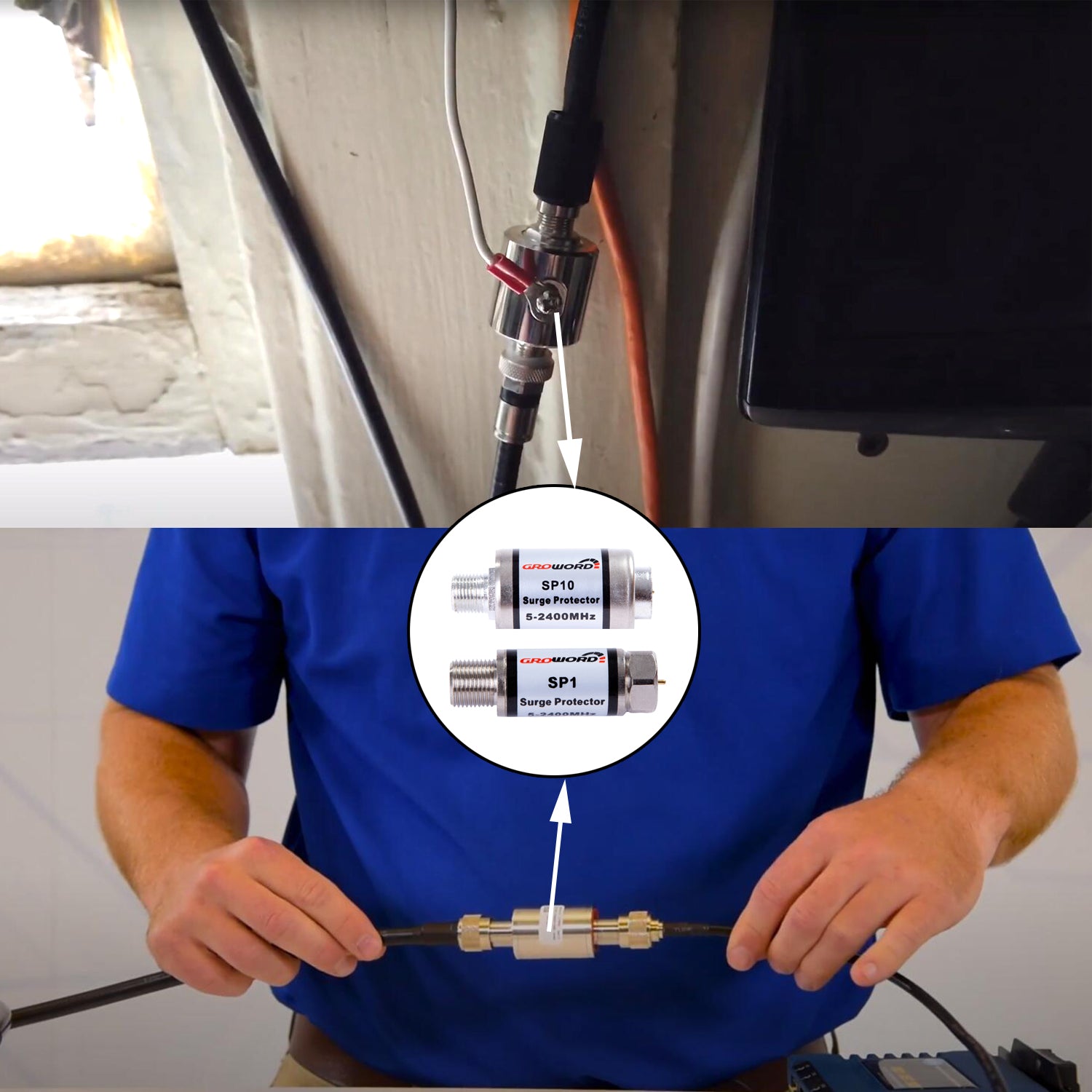 Protetor contra surtos coaxial SP-10, 2 unidades de prendedor de raios, para TV a cabo e antena de satélite, baixa perda (5-2400 MHz)