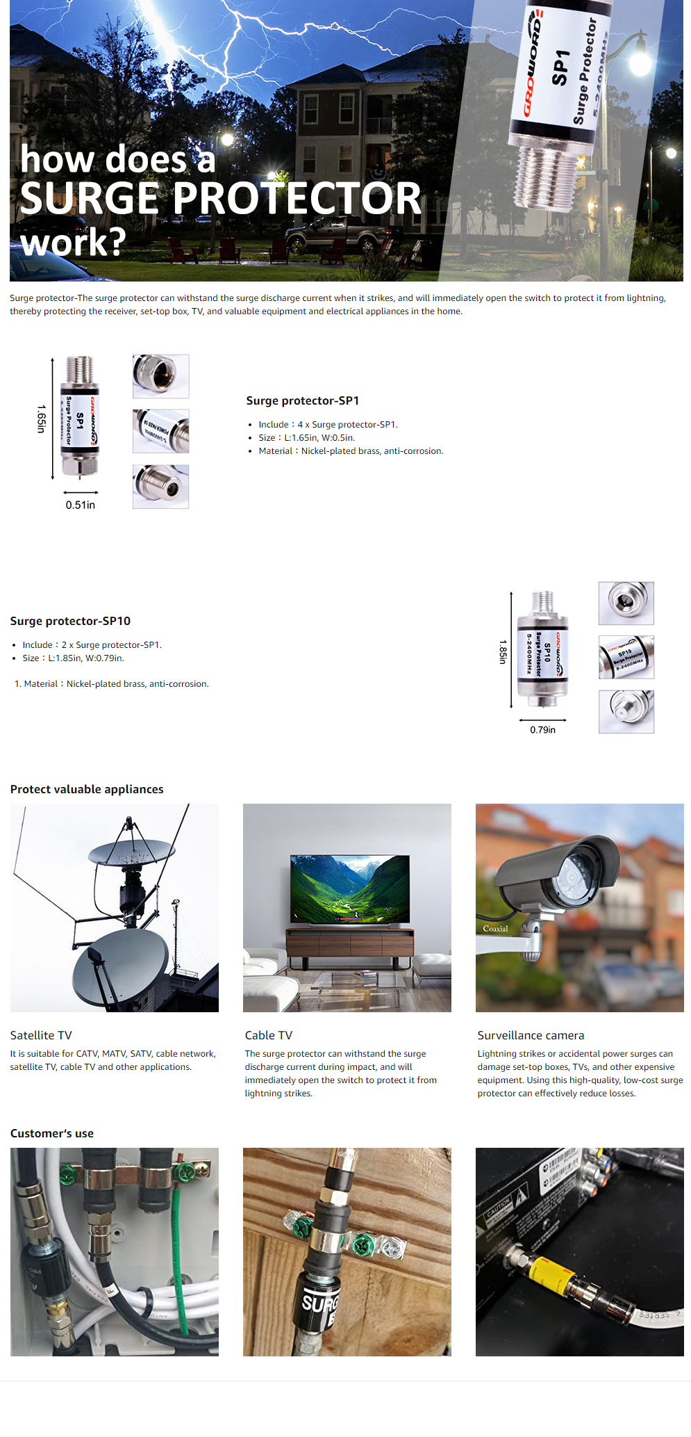 - ✔【Material de alta qualidade】: O protetor contra surtos é feito de latão niquelado de alta qualidade, que é durável e anticorrosão, e pode ser usado por um longo tempo sem danos.